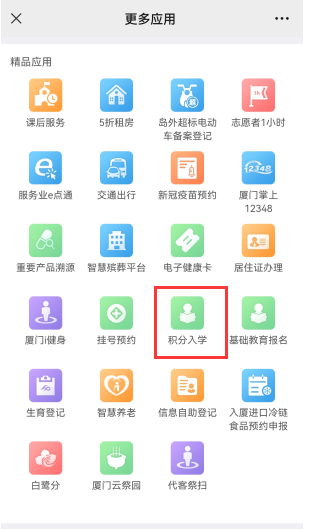 3、账号绑定后,点击左下角的“i服务”-“常用服务”(图5)进入,在常用应用中点击“积分入学”版块进入报名登记界面(图6)。