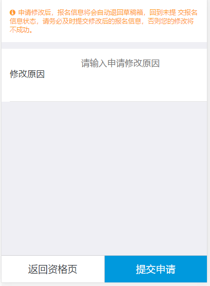 2.系统将重新审核修改后的报名信息。因此为缩短系统排队审核时间,请尽量减少申请修改的次数。