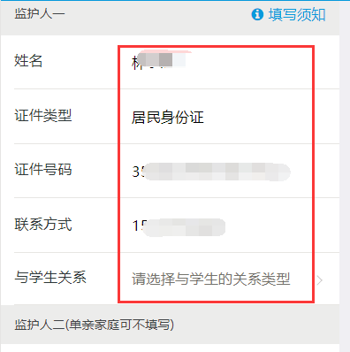 点击“监护人信息”进入“监护人采集界面”,监护人一的信息默认i厦门注册信息,如不完整需补充完整信息(图10)。
