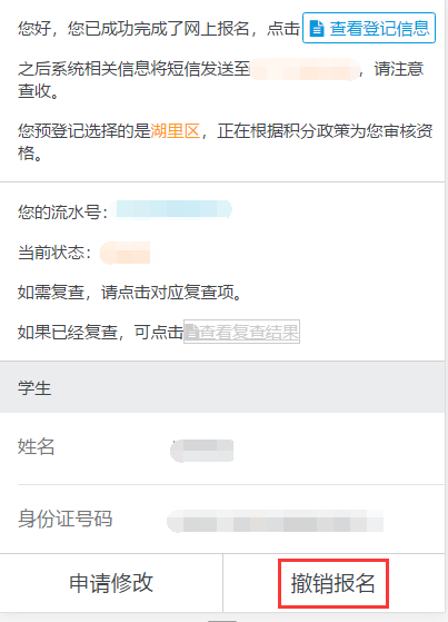 因个人原因,自愿放弃参加积分入学,可点击“撤销报名”(图24)。撤销报名需注明撤销原因(原因的文字描述不少于20个字),填写验证码,方可撤销报名(图25)。撤销报名后,即为自愿放弃参加我区2022年积分入学。