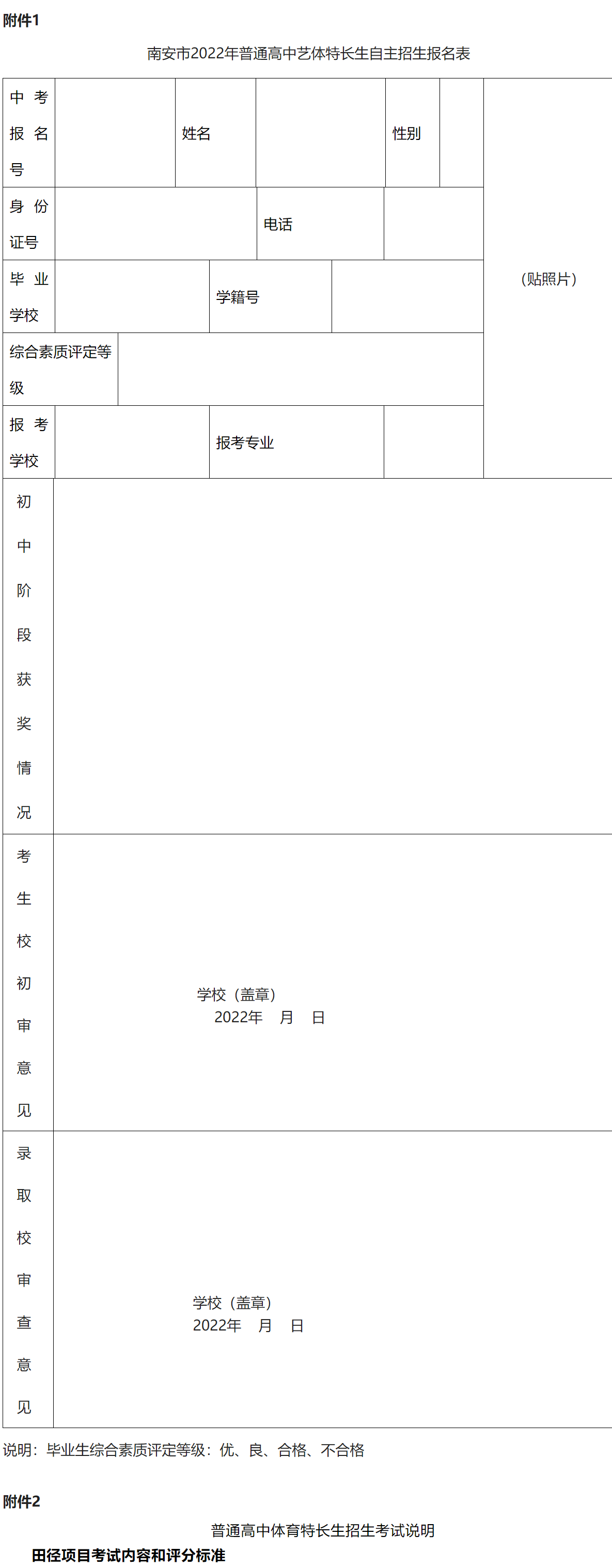南安市龙泉中学2022年高一年体育特长生招生方案