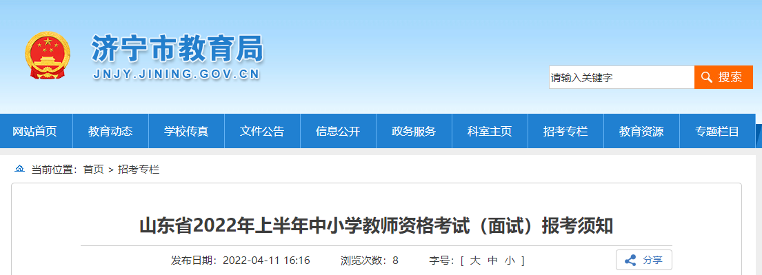山东省2022年上半年中小学教师资格考试(面试)报考须知