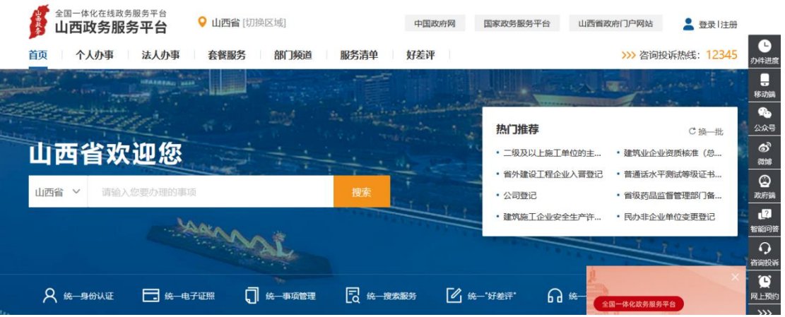 第一步 在浏览器中打开“山西省政务服务网” http://www.sxzwfw.gov.cn/icity/public/index?record=istrue