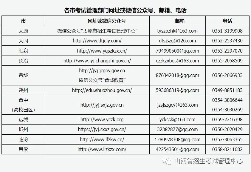 3.按照疫情防控属地化、动态化管理原则,考生必须密切关注山西招生考试网(http://www.sxkszx.cn/)和所报市考试部门在网站或微信公众号(附后)发布的最新防疫要求,做好考前准备,因不遵守当地疫情防控要求导致无法参加考试的,责任自负。