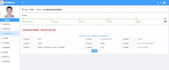(三)点击报考流程上的“缴费”节点或左侧【网上缴费】,核对报考专业科目和金额,确认无误后点击“支付”跳转至考区指定的缴费平台。