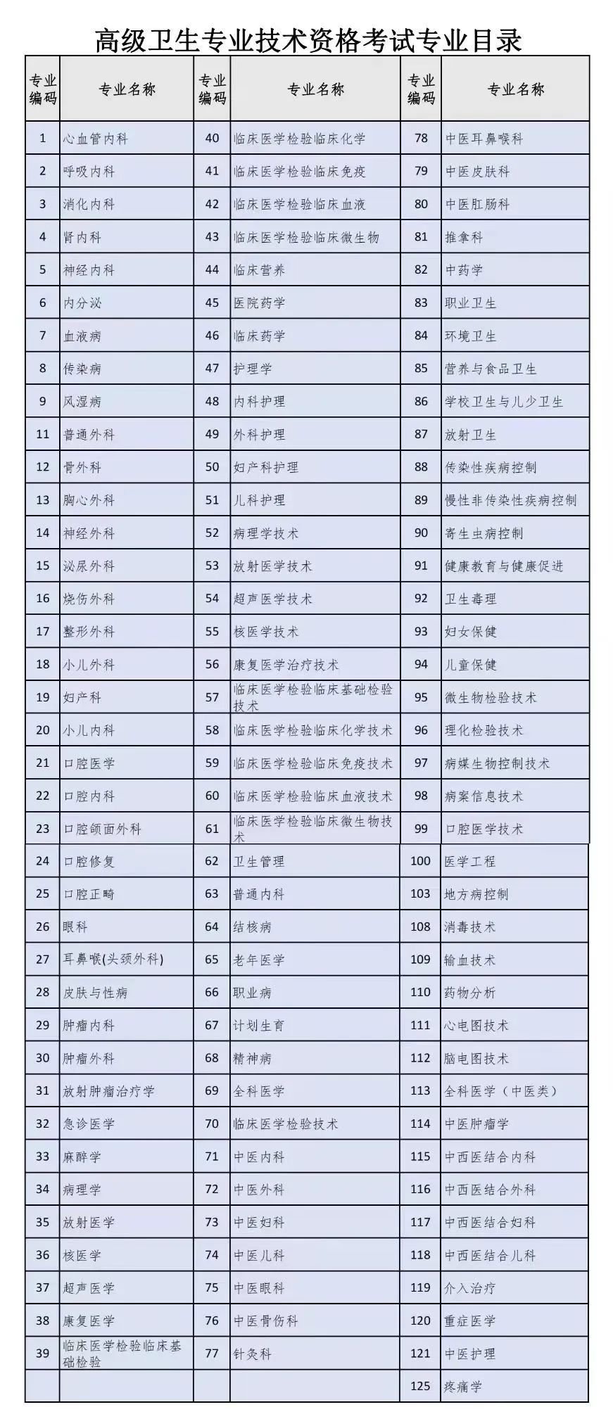 (三)考生报考的专业类别原则上应与其低一级专业技术类别相符。对未列入《高级卫生专业技术资格考试专业目录》的专业,可根据个人实际选报相近的专业。
