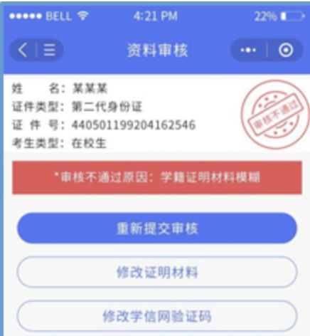 提示:若长时间处于待审核,请检查是否在中国教育考试网提交审核。