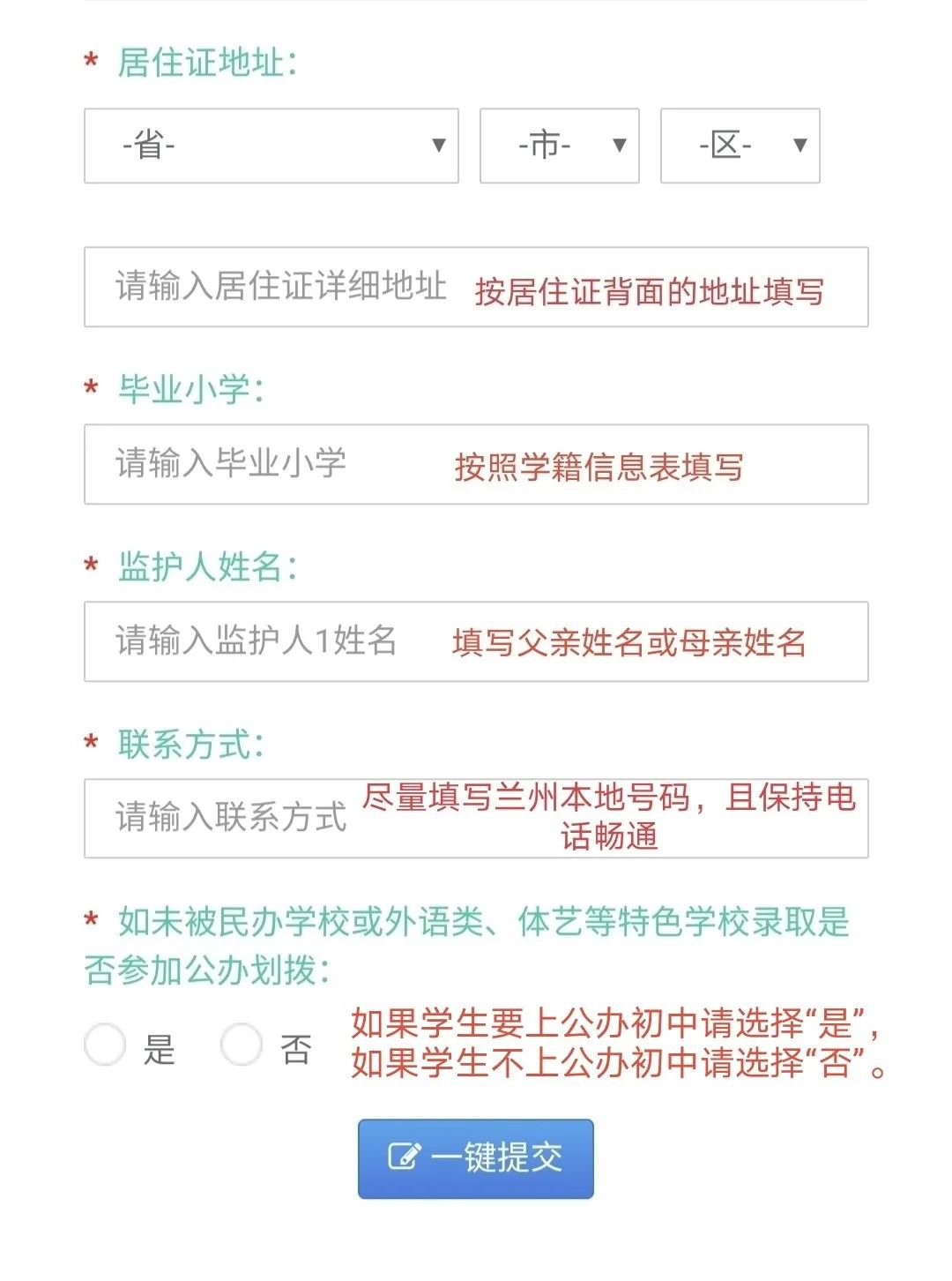 温馨提示:在七里河区就读的外地(外县区)户籍小学毕业生,按照毕业小学直接对口划拨,不需要进行登记。