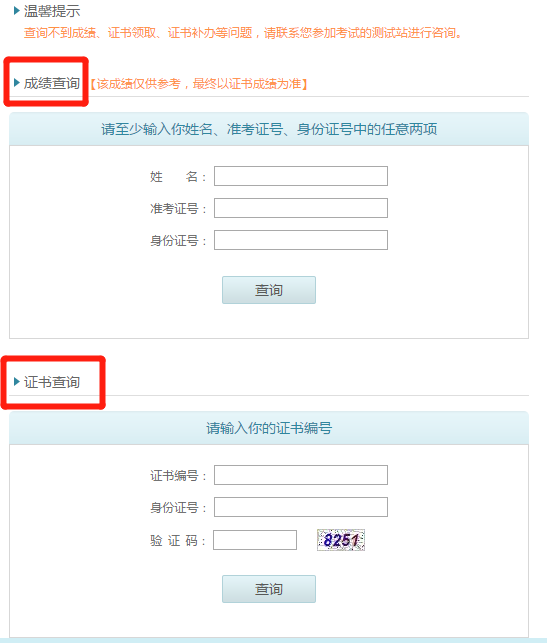 进入查询入口:http://www.cltt.org/studentscore,输入自己的准考证号和个人信息,查询普通话考试成绩,输入自己的证书编号和身份证号,还可以查询自己的普通话证书