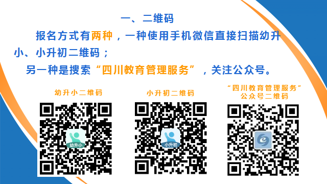 有意向就读民办义务段学校的适龄儿童少年,需在规定时间登录“<四川教育管理服务>微信公众号一公共服务–升招业务系统”进行网上报名和信息采集;选择就读公办学校的适龄儿童少年,在规定时间登录“自贡市义务教育招生入学服务平台”进行网上报名和信息采集;公、民办学校可以兼报。民办义务段学校小学毕业生如选择直升本校初中,需在省平台上报名。