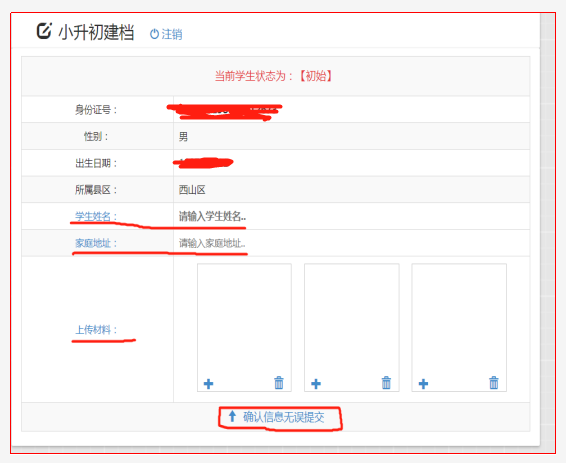 家长上传完成相关佐证材料并确认无误后,点击“确认信息无误提交”按钮完成信息上报。