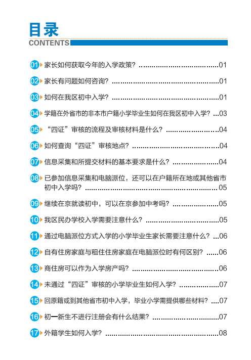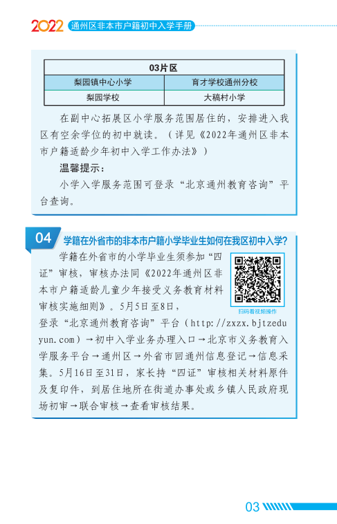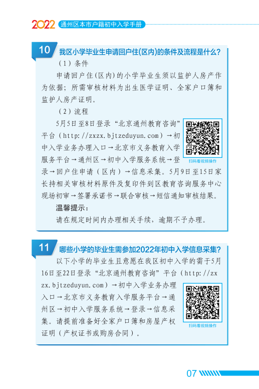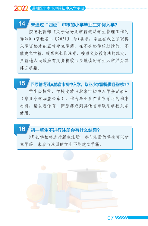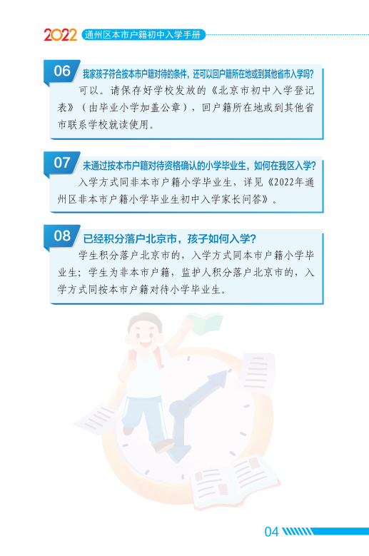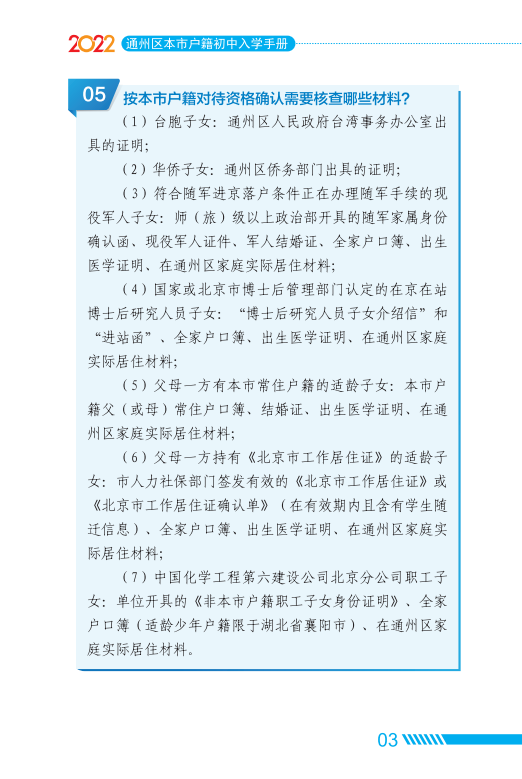 2022年北京市通州区家长问答手册初中入学(京籍+非京籍)
