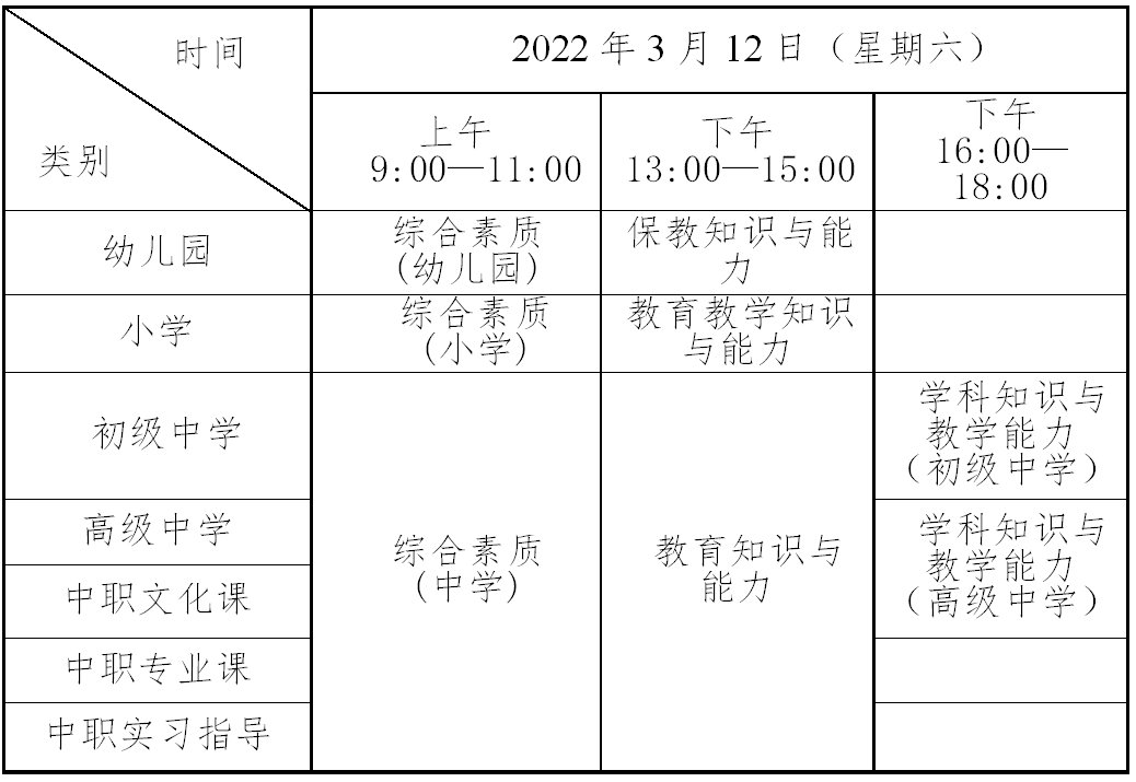 2022上半年广东省教师资格笔试考试(科目+时间)