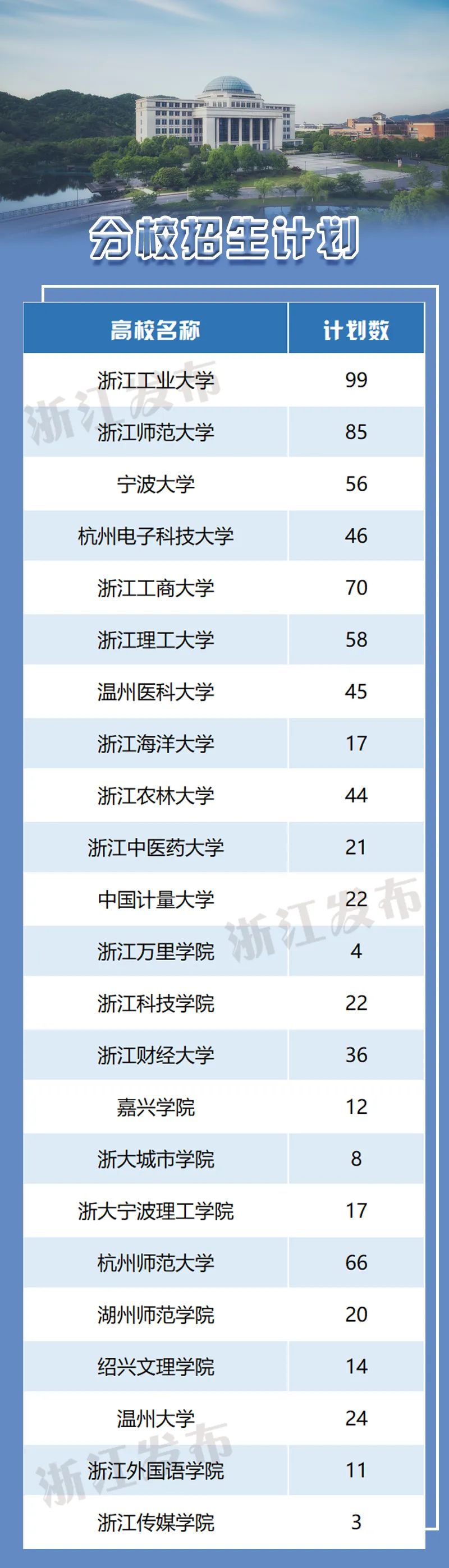 浙江工业大学、浙江师范大学、宁波大学、杭州电子科技大学、浙江工商大学、浙江理工大学、温州医科大学、浙江海洋大学、浙江农林大学、浙江中医药大学、中国计量大学、浙江万里学院、浙江科技学院、浙江财经大学、嘉兴学院、浙大城市学院、浙大宁波理工学院、杭州师范大学、湖州师范学院、绍兴文理学院、温州大学、浙江外国语学院、浙江传媒学院等23所高校。