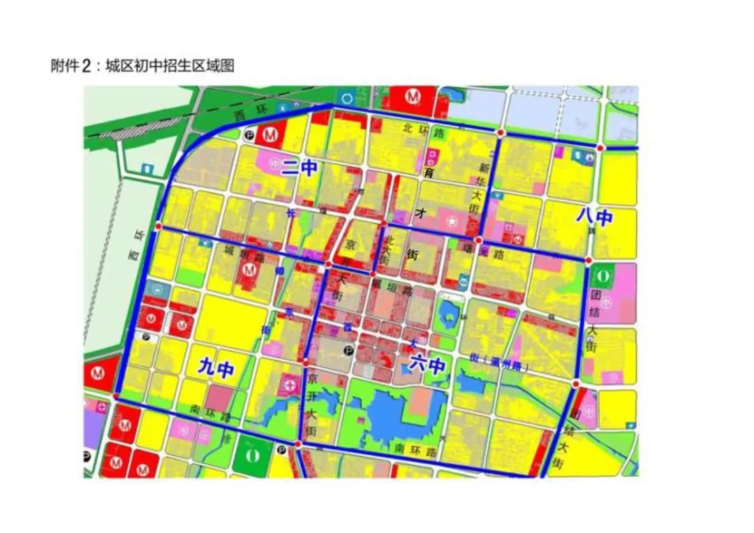 (2)城垣西路街道南八里铺村适龄六年级毕业学生、果子洼回族乡大渔庄小学和北务尔头小学的六年级毕业学生招生片区均为市九中。
