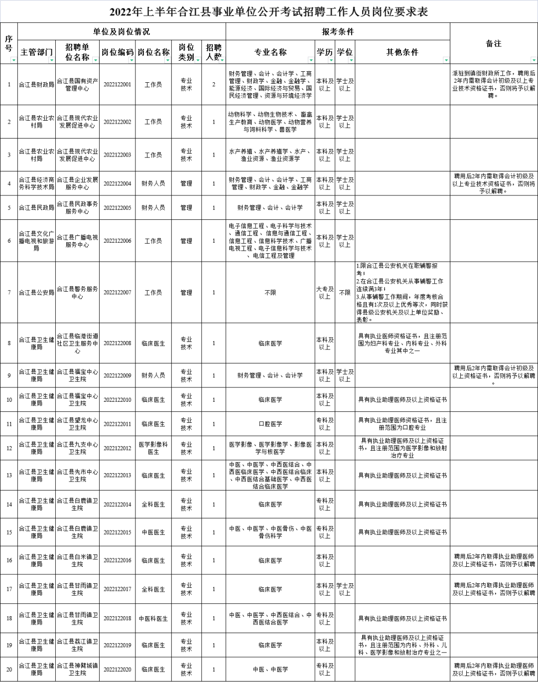 4.年龄:1986年4月20日(不含)——2004年4月20日期间出生,以有效居民身份证记载为准。获得市级及以上表彰或省级公安机关及以上奖励的,或在脱贫县、艰苦边远地区工作的人员报考编码2022122007岗位,年龄可放宽至1981年4月20日(不含)——2004年4月20日。