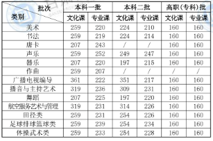 二、2022年甘肃省普通高校招生艺术体育类专业统考录取最低控制分数线
