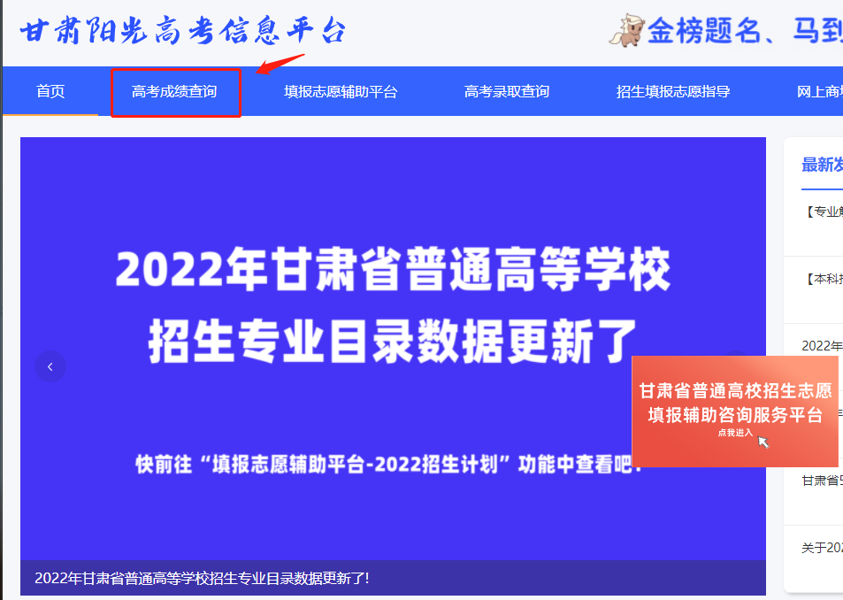 进入网站后,点击“高考成绩查询”栏目,输入考生号、身份证号进行查询。