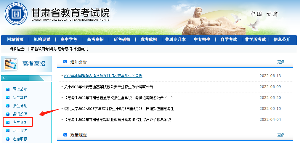 一、甘肃省教育考试院网站查询