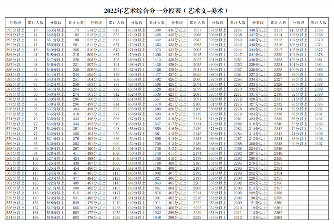 2022宁夏高考艺术类一分一段表(文科+理科)