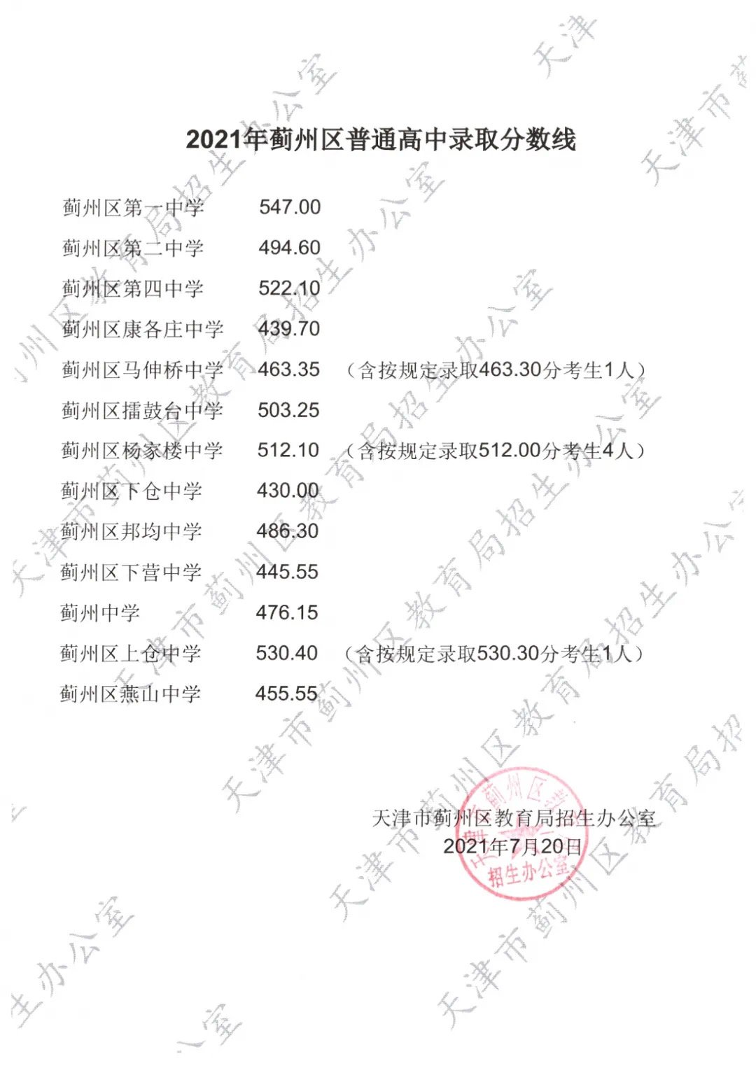 2022年天津中考各高中最低录取分数线尚未公布,预计将会在7月中旬起公布录取查询的同时,公布各高中的录取分数线。请持续关注,待官方公布后,小编会及时更新。以下为2021年各高中最低录取分数线信息,仅供参考。