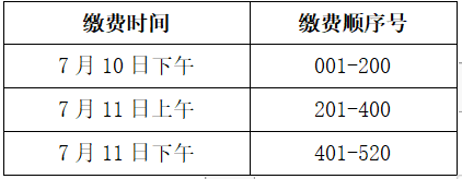 7月11日下午14:00-17:00、7月12日上午8:00-10:00家长须按照缴费顺序号对应的注册场次时间到达学校办理新生注册手续(无需过早排队)。