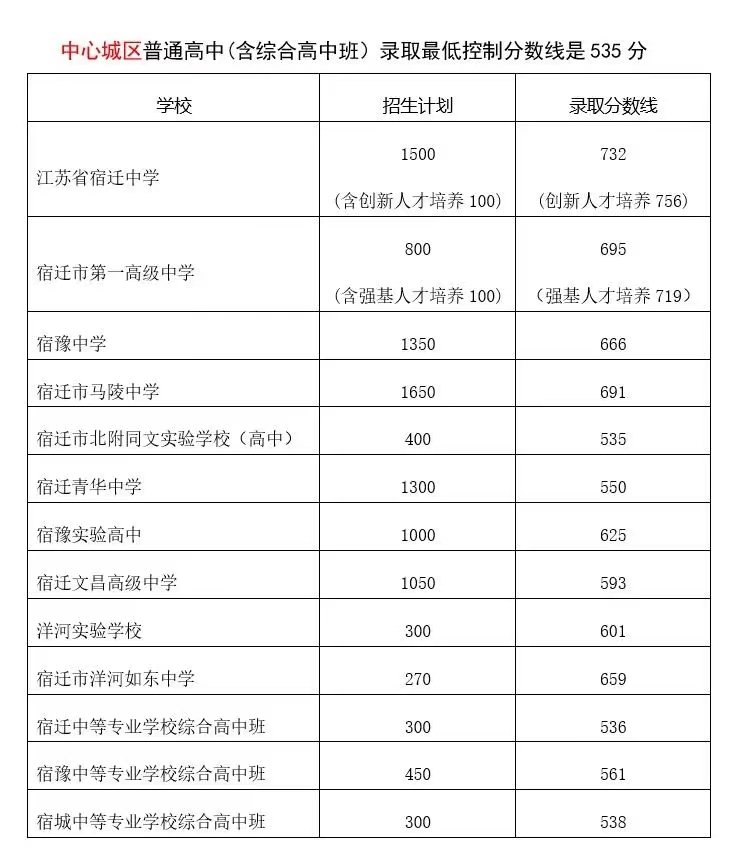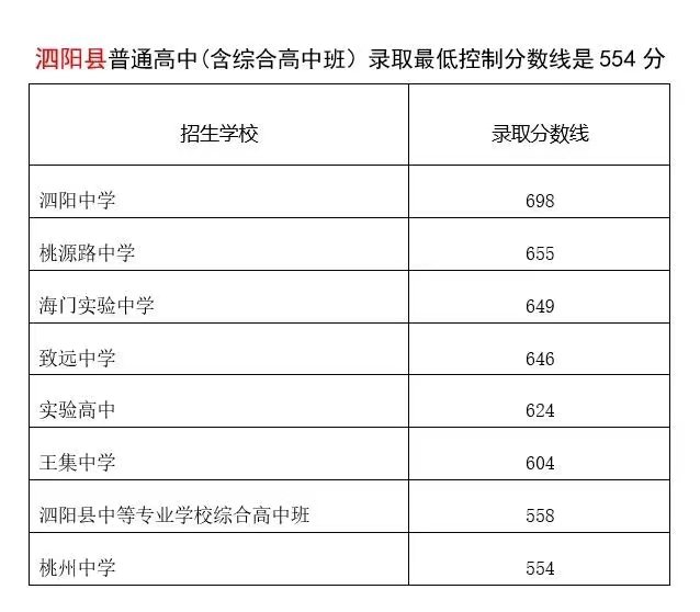 三、泗阳县各校录取分数线: