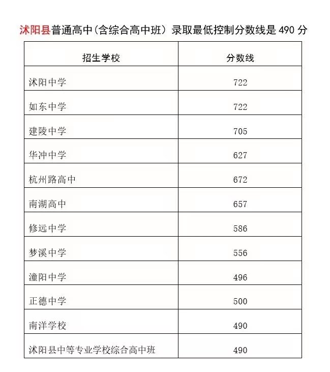 二、沐阳县各校录取分数线:
