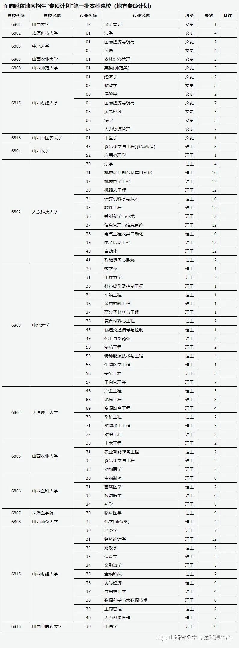 目前,我省提前艺术本科、提前本科一批、面向脱贫地区招生“专项计划”第一批本科院校因生源不足或考生不服从专业调剂退档出现缺额。现予集中公布,公开征集志愿。