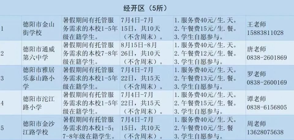 德阳市旌阳区哪些学校有暑假托管服务?