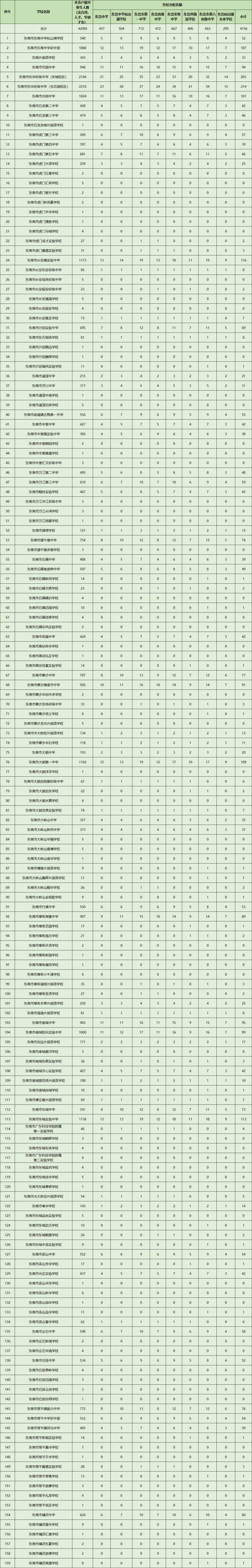 2022年东莞中学等八校“指标到校”名额分配表