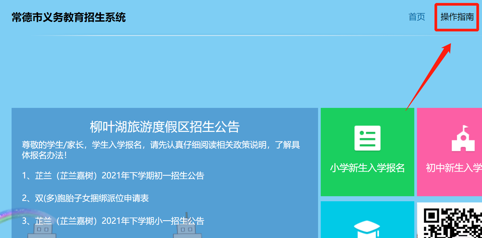 第一步:系统首页界面右上角显示了系统操作指南等资料,供监护人参考