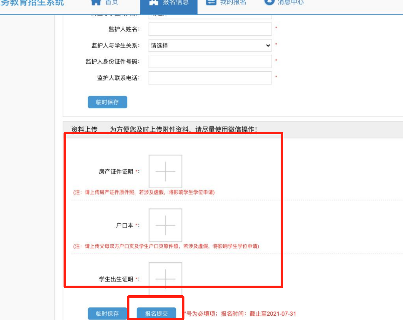 第二步:学生报名资料审核结果也会通过填写的监护人手机号码发送短信消息通知家长。