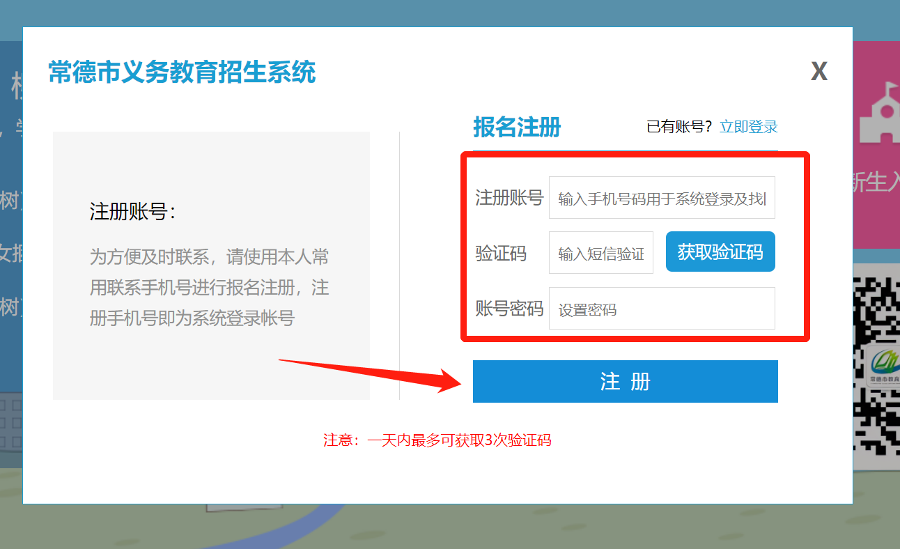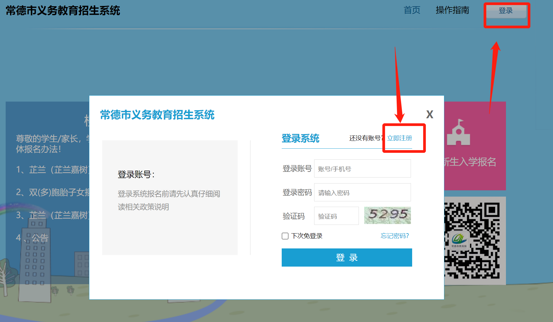 适龄少年(儿童)监护人通过网上报名系统(常德市义务教育招生系统)进行报名。