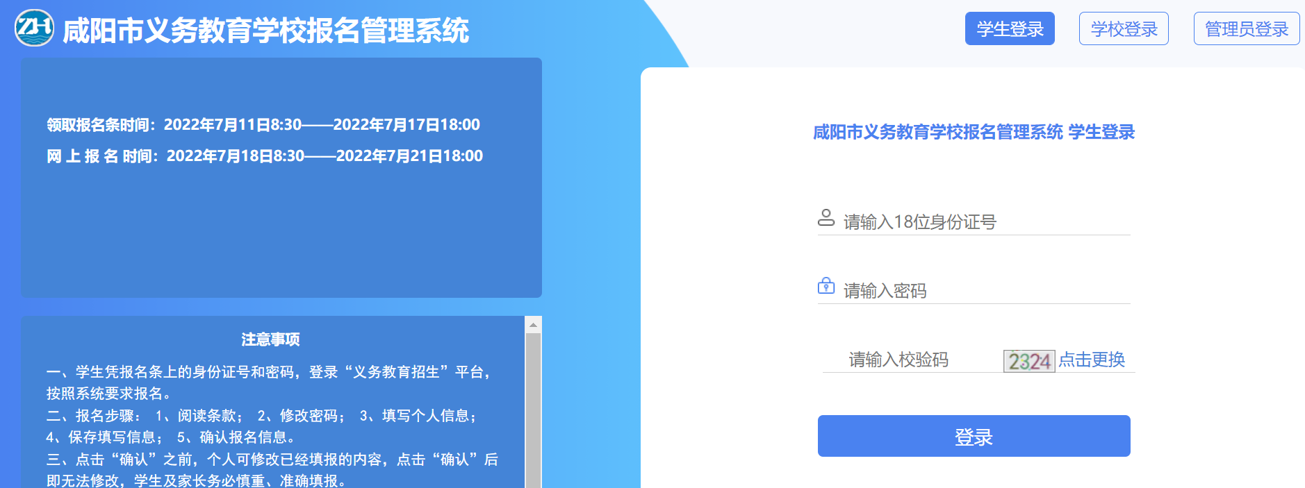 咸阳市小升初网上报名平台>>>点击进入