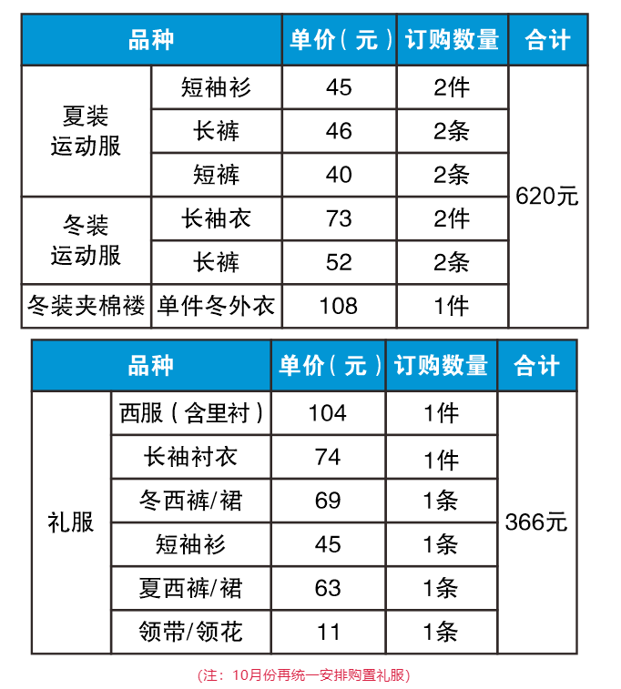 (注:10月份再统一安排购置礼服)