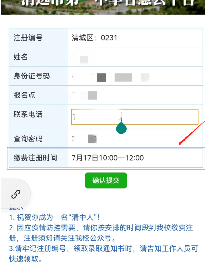 因疫情防控需要,实施新生分批次进校注册,具体安排请进入《清远市第一中学智慧云平台》查阅入校缴费注册时间。尽量按平台安排的时间段进校注册。