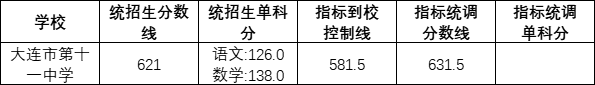 2022年大连第十一中学录取分数线: