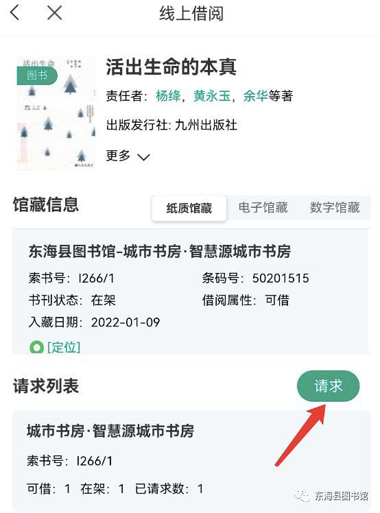 支持线上借阅的图书 即可点击 请求