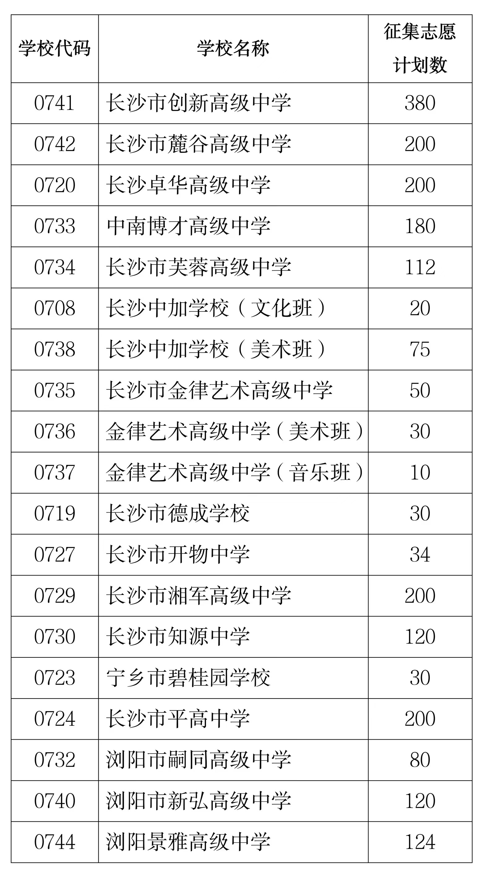 长沙市城区2022年高中学校招生第一阶段录取于8月3日结束。部分民办普通高中学校仍有少量空缺计划,面向长沙城区应届初中毕业生征集志愿。具体的征集志愿计划数如下: