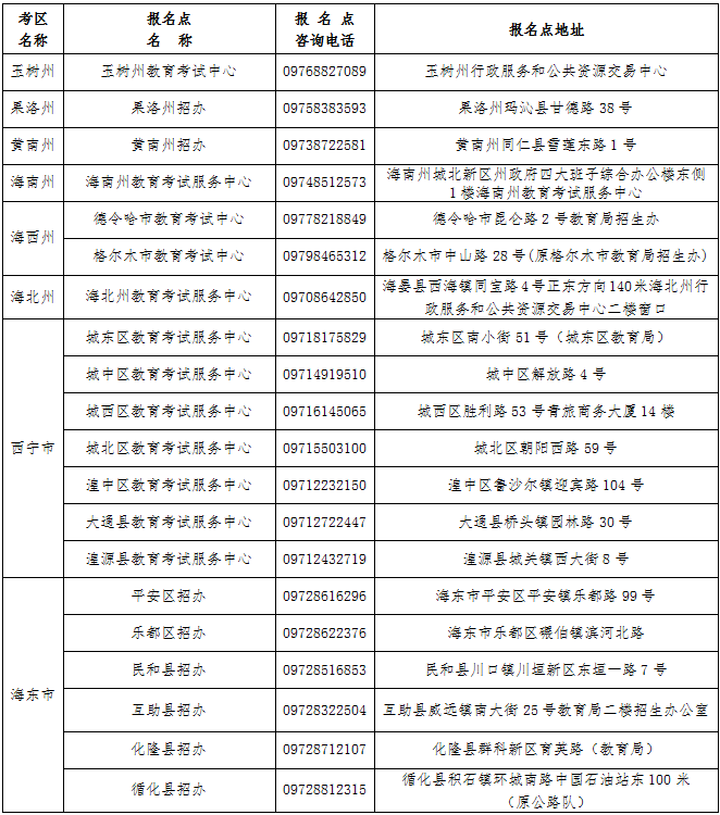2022青海省成人高考考区及报名点地址+联系方式