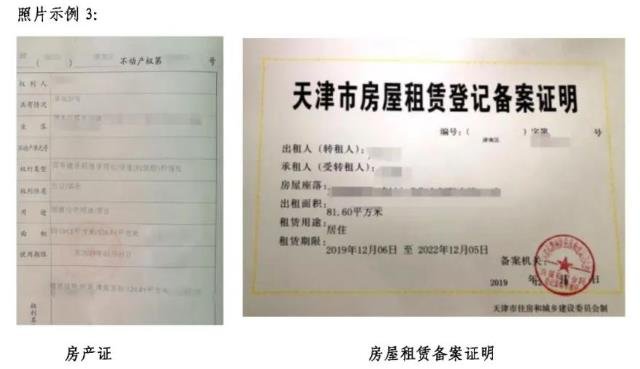(三)津南区住房证明:津南区房产证基本信息面(若房产证尚未下发,可提交购房合同、购房全款发票及契税票照片)或津南区房屋租赁备案证明。(房主或承租人应与申请人信息一致);