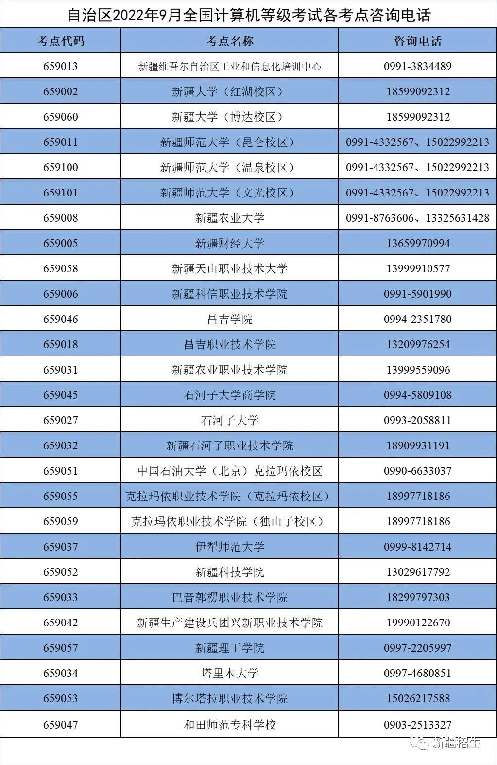 附件:自治区2022年9月全国计算机等级考试各考点咨询电话