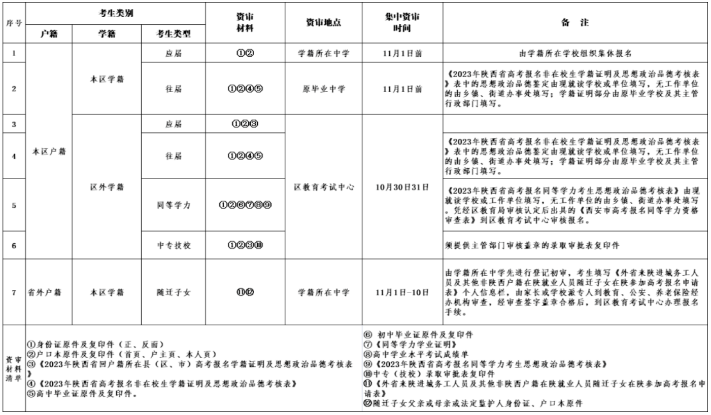 所有拟在陕参加2023年高考者须于2022年11月1日至2022年11月10日,登录陕西省教育考试院门户网站(点击进入)或陕西招生考试信息网(点击进入)完成网上报名并缴费,逾期未报名者责任自负。