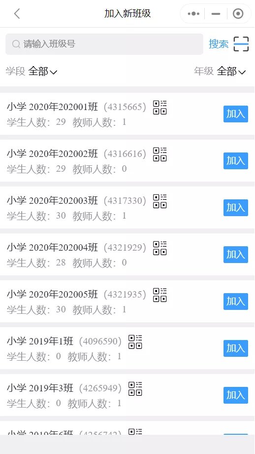 第三步:进入“我的班级”,无班级则通过扫码/输入班级编号/列表筛选后加入班级。