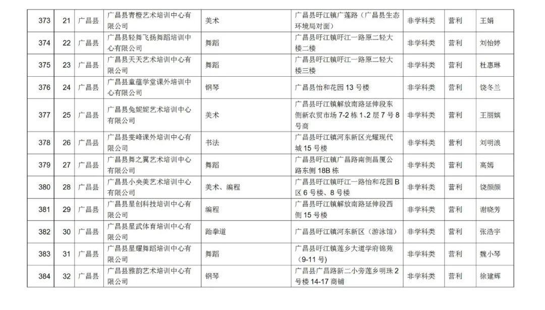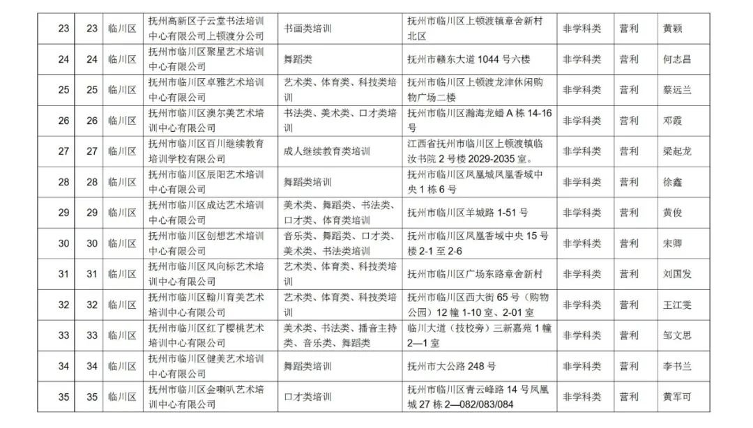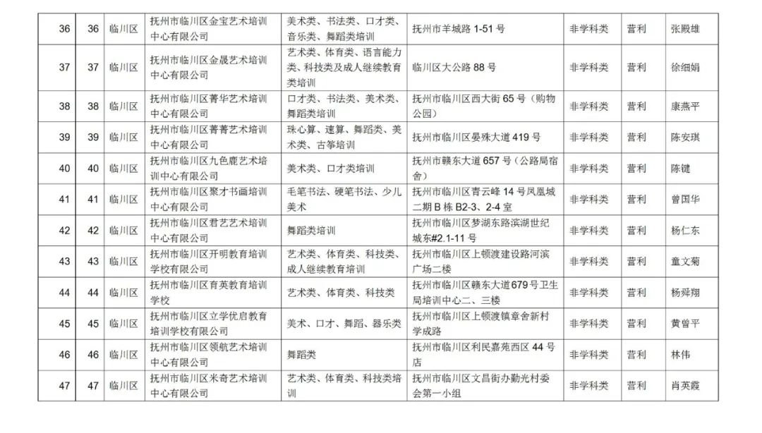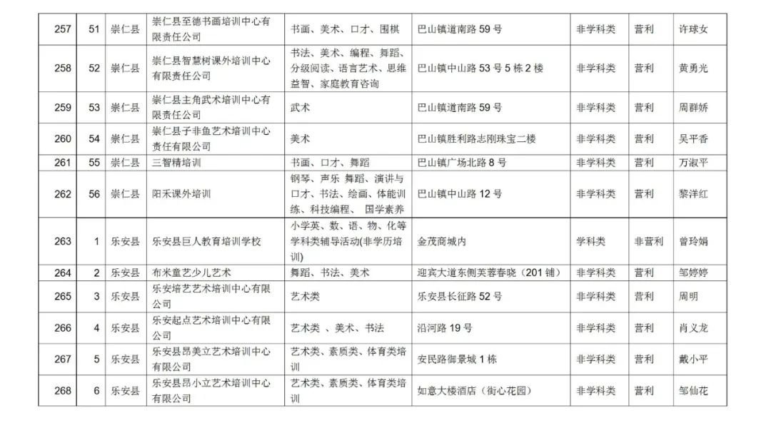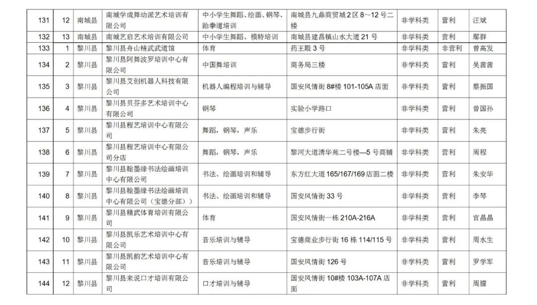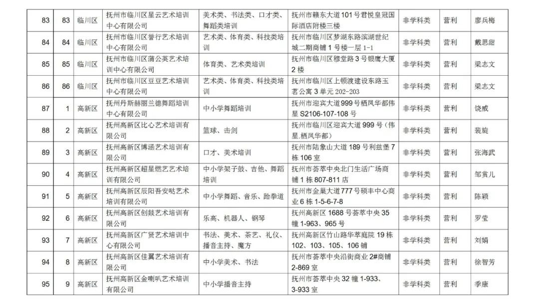 为贯彻落实国家“双减”工作决策部署和省、市有关工作要求,规范校外培训机构办学行为,切实减轻中小学生课外负担和家庭经济负担,抚州市对全市校外培训机构进行了集中整治和认真审核。现向社会公布抚州市第一批校外培训机构白名单,引导家长理性看待、慎重选择校外培训机构,多关注孩子身心健康,不盲目跟风报班,远离“无证无照”机构,保护自身合法权益,推进家校社协同育人,营造良好的教育生态环境。具体白名单见附件。