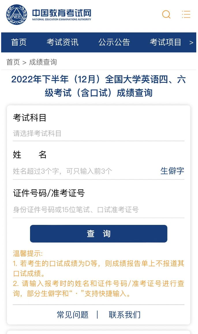 2022年12月四六级英语成绩查询时间: