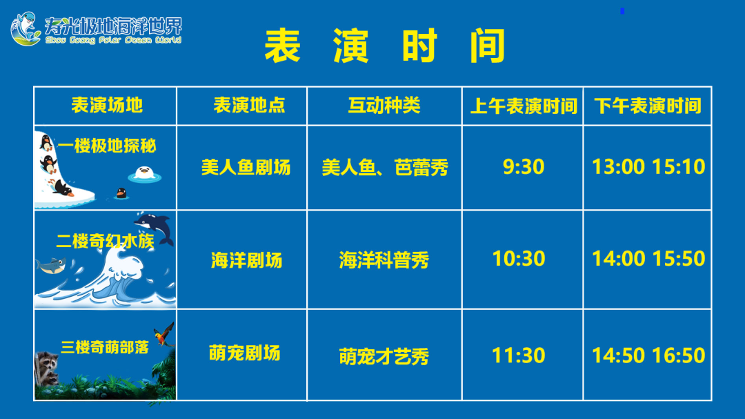 自2022年5月16日起寿光极地海洋世界营业及表演场次时间公示如下: