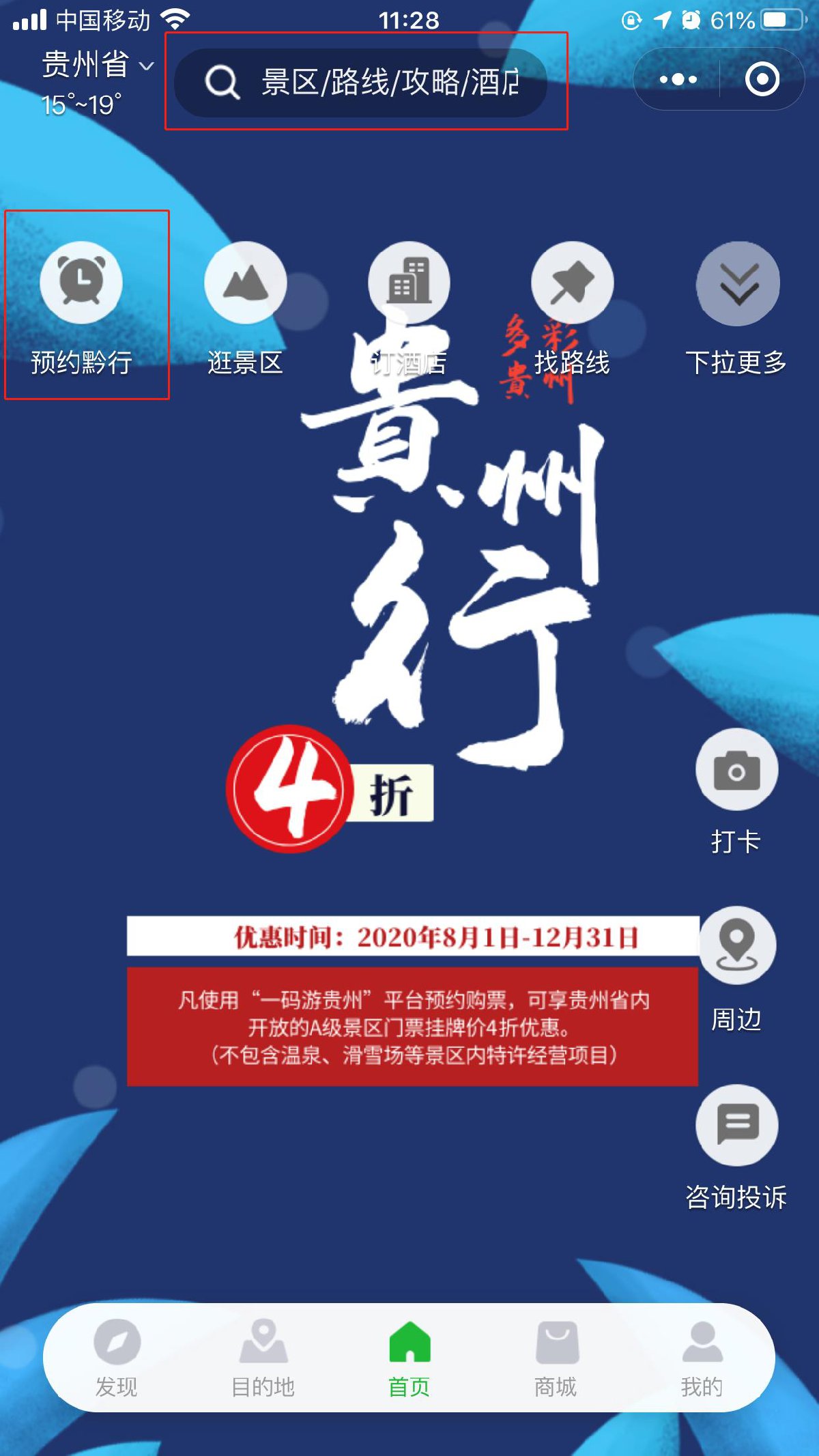 1.微信搜索小程序 "一码游贵州"并进入小程序