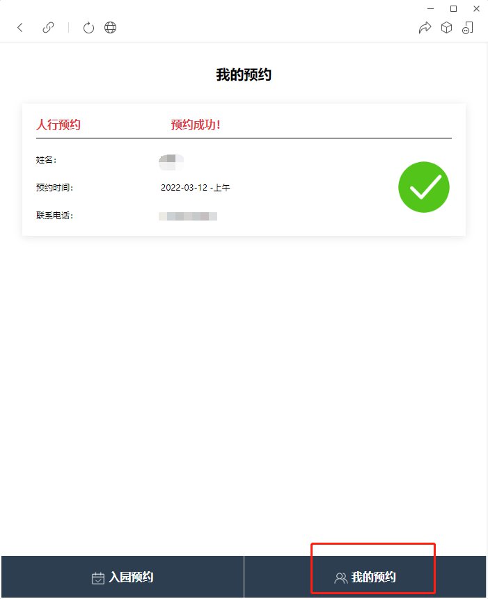 2.点击首页的【人员预约】,阅读预约须知后进入预约入园页面
